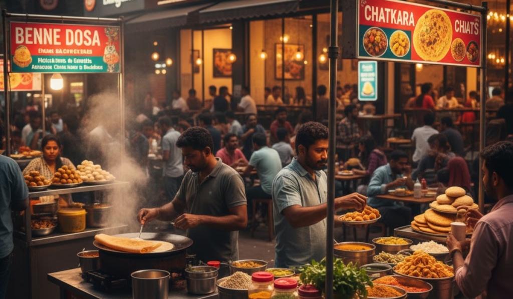 • VV Puram Food Street a place to find dosas, chaats, desserts, and traditional Karnataka snacks